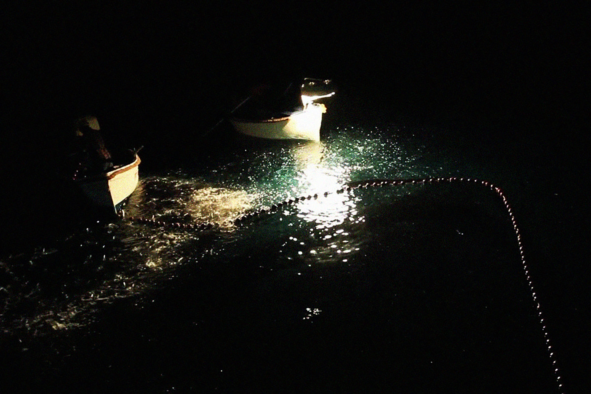 Lights at Sea is a tale of men, living and working at sea. For over two decades every year a fishing boat has sailed from the island of Ponza to Porto Torres (Northern Sardinia). The core of the story is the everyday life of the crew: the overnight work, the routine and demands of the sea and the hierarchies and rivalries among the twelve men aboard the fishing boat “Capobianco”. The documentary unfolds through the recollections and conversations of the fishermen in their native dialects with the constant background of the noise of the engine. Lights at Sea is a symbolic search; the constant struggle between man and the sea, while the unpredictable nature of the catch is synonymous with gain or basic survival.